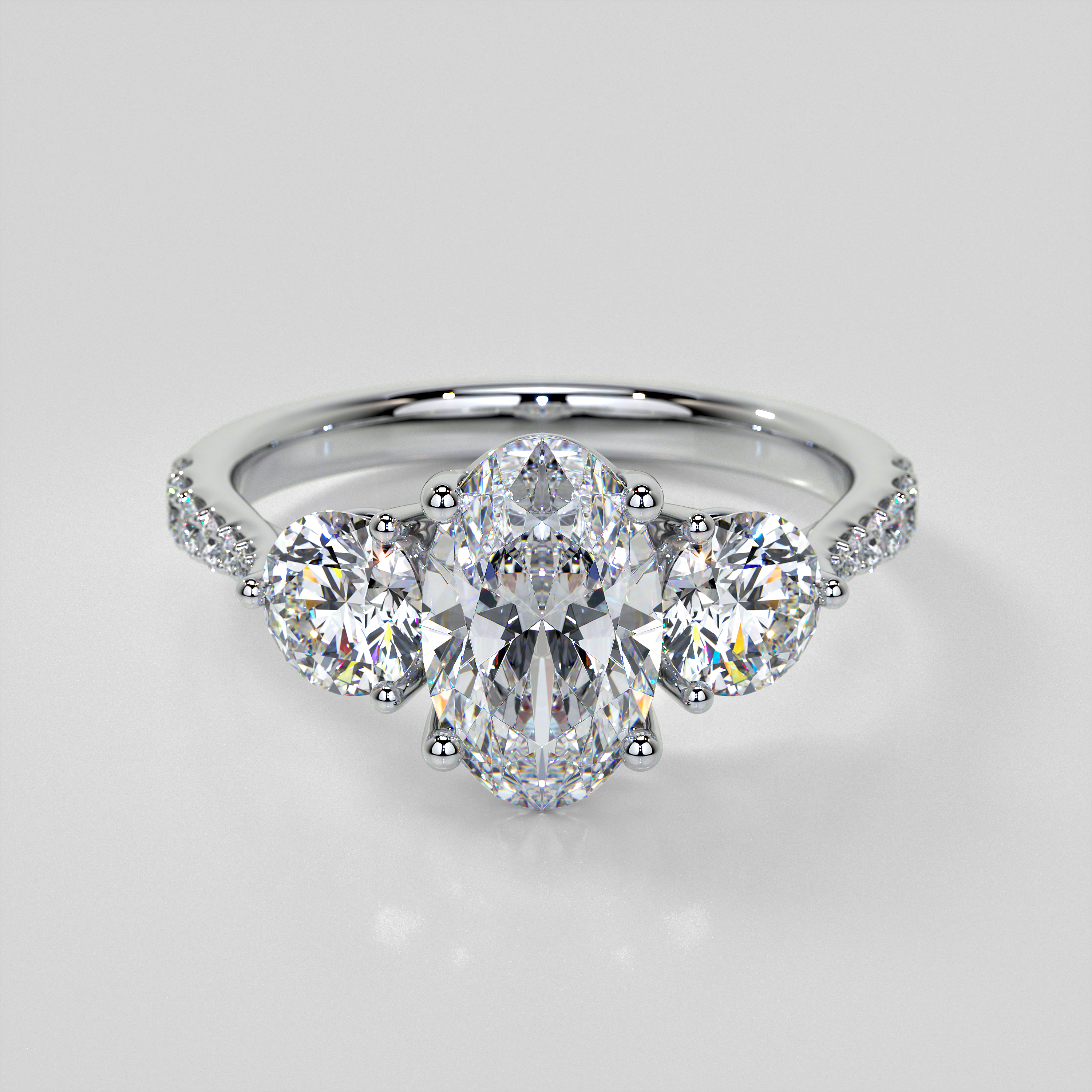 Lab Grown Diamond Oval Cut Three-Stone Engagement Ring with Accents