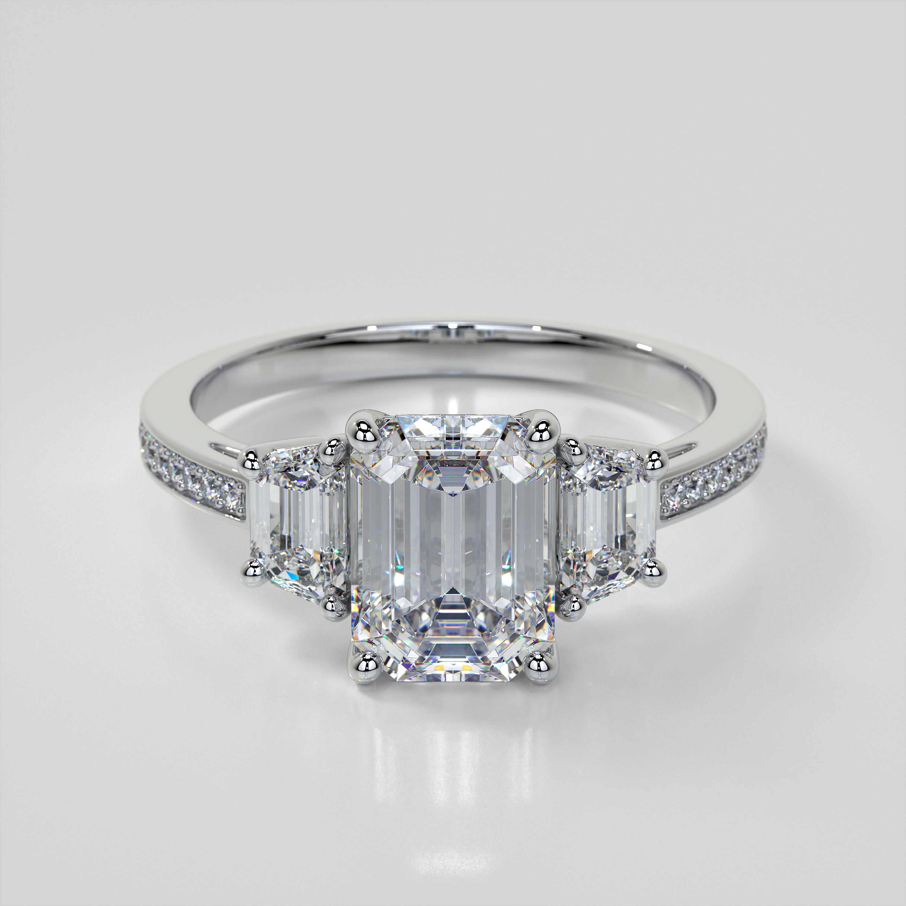 Lab Grown Diamond Emerald Cut Three-Stone Engagement Ring With Trapezoid Accents