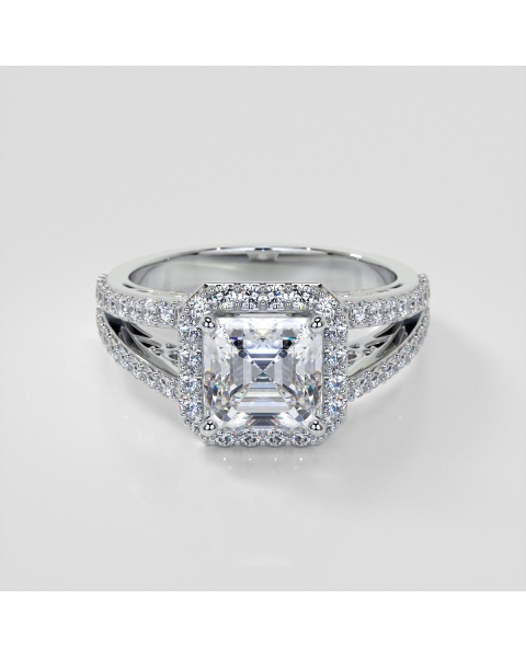 Lab Grown Diamond Asscher Cut Halo Filigree Style Engagement Ring