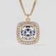 Show your sense of style with this beautiful posh pendant. A striking round shaped center stone is set with a beaming lab grown diamond cushion halo. Pendant features a bail slide that always sits flush on your décolleté. The perfect addition to any collection.