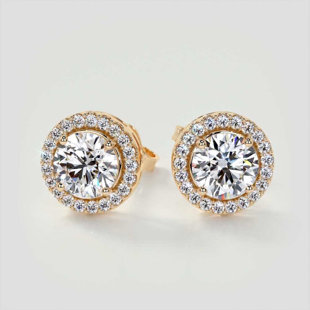 2.32CT Round Cut Prong Set Tier Halo Earrings