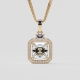 This divine pendant will have you focused on its whimsical details. A stunning pave octagonal halo surrounds our dazzling Asscher cut lab grown diamonds. Further embellished by a ravishing baguette stone set over the top of this delicate piece. Pendant features a bail slide that always sits flush on your décolleté. An ideal gift.