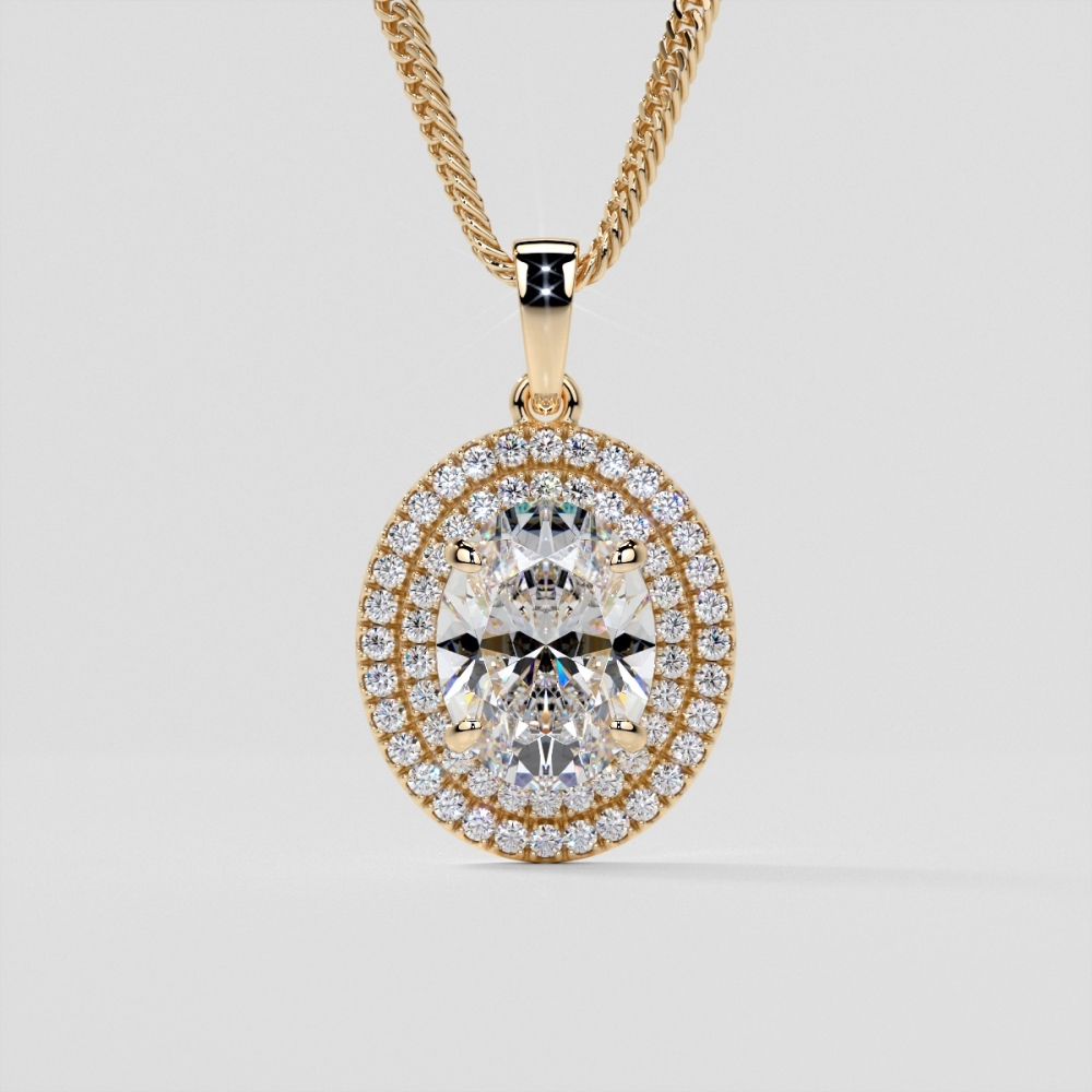 - Oval Cut Prong Set Double Tier Halo Pendant
