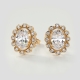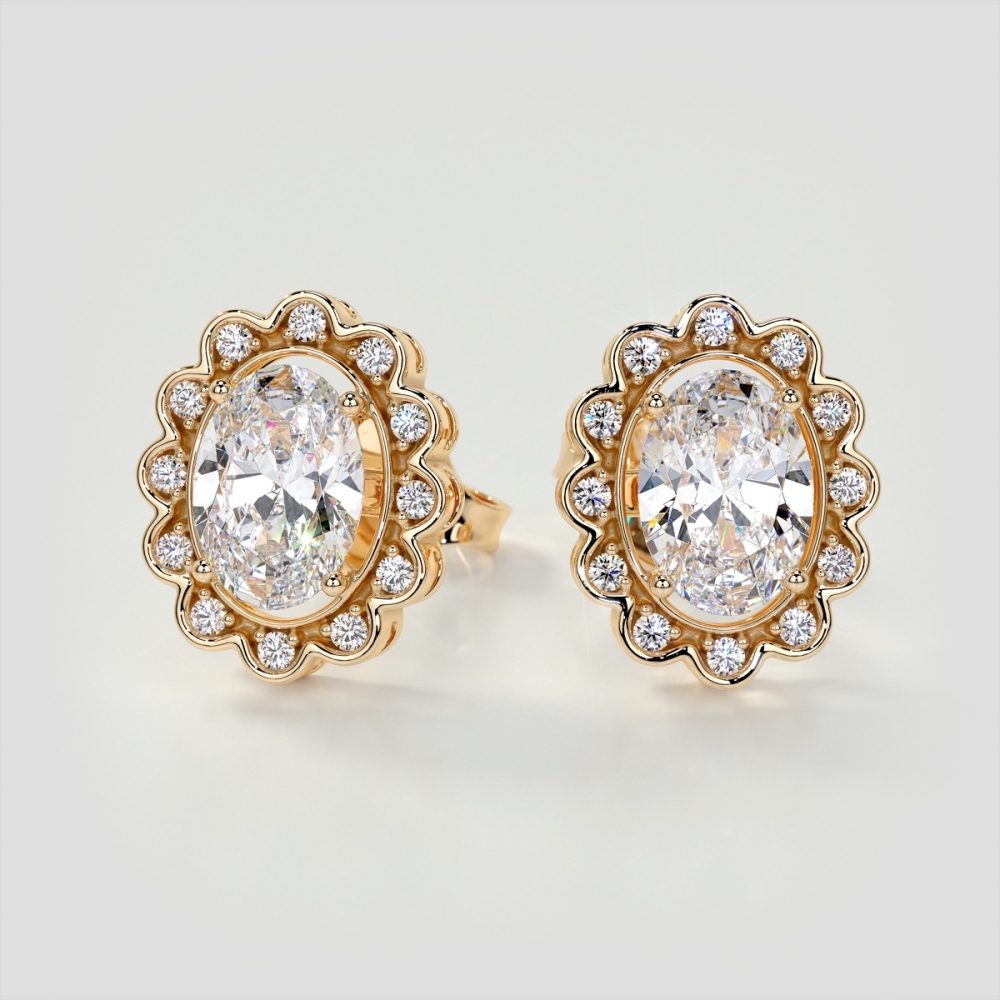 Spruce up your ensemble with this captivating earring set. Stunning oval cut center stones are set in a simulated diamond halo that is blooming like a flower with matching cutout detail on the sides. Elegant and feminine, this set is sure to impress.