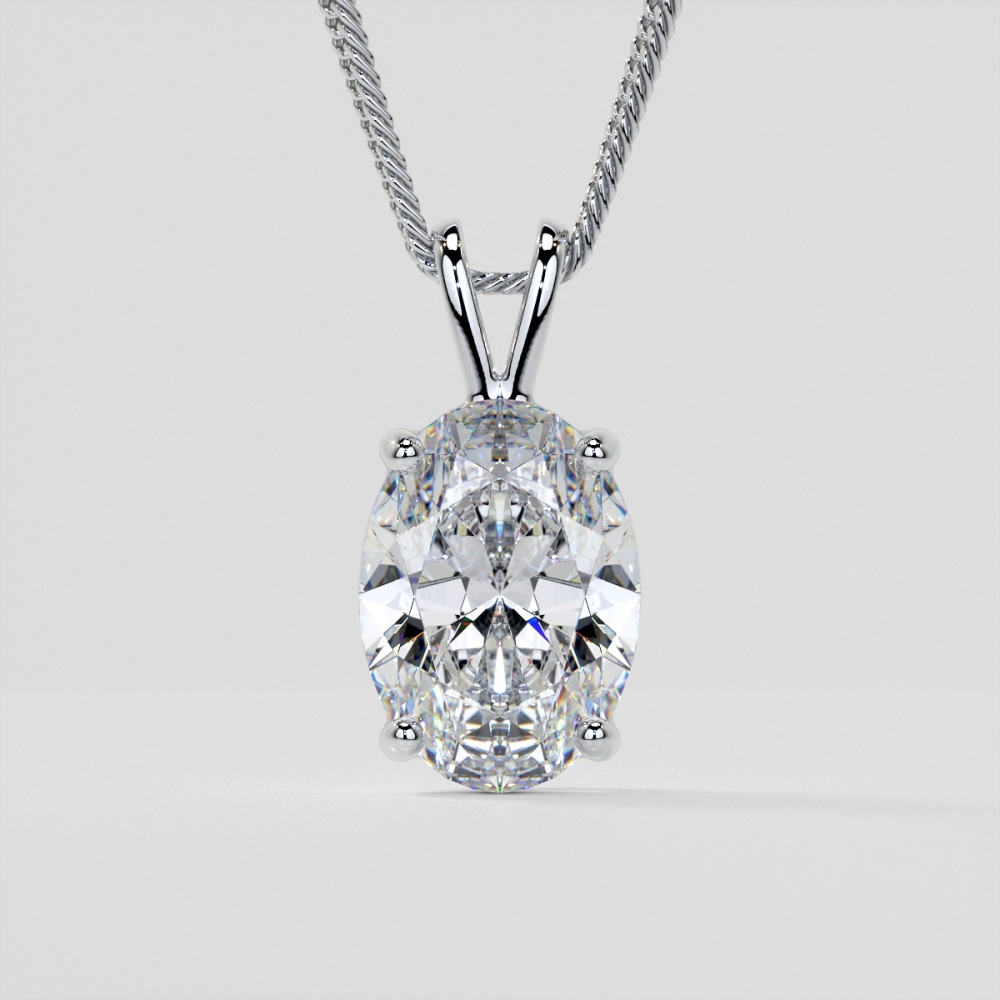 Lab Grown Diamond Oval Cut Solitaire Pendant With Diamond Cut Cable Chain