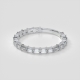 This band features a delightful piece that showcases a seamless row of baguette-cut diamonds in a deep shared prong setting. This design exudes simplicity and elegance, symbolizing the unwavering embrace of your love.